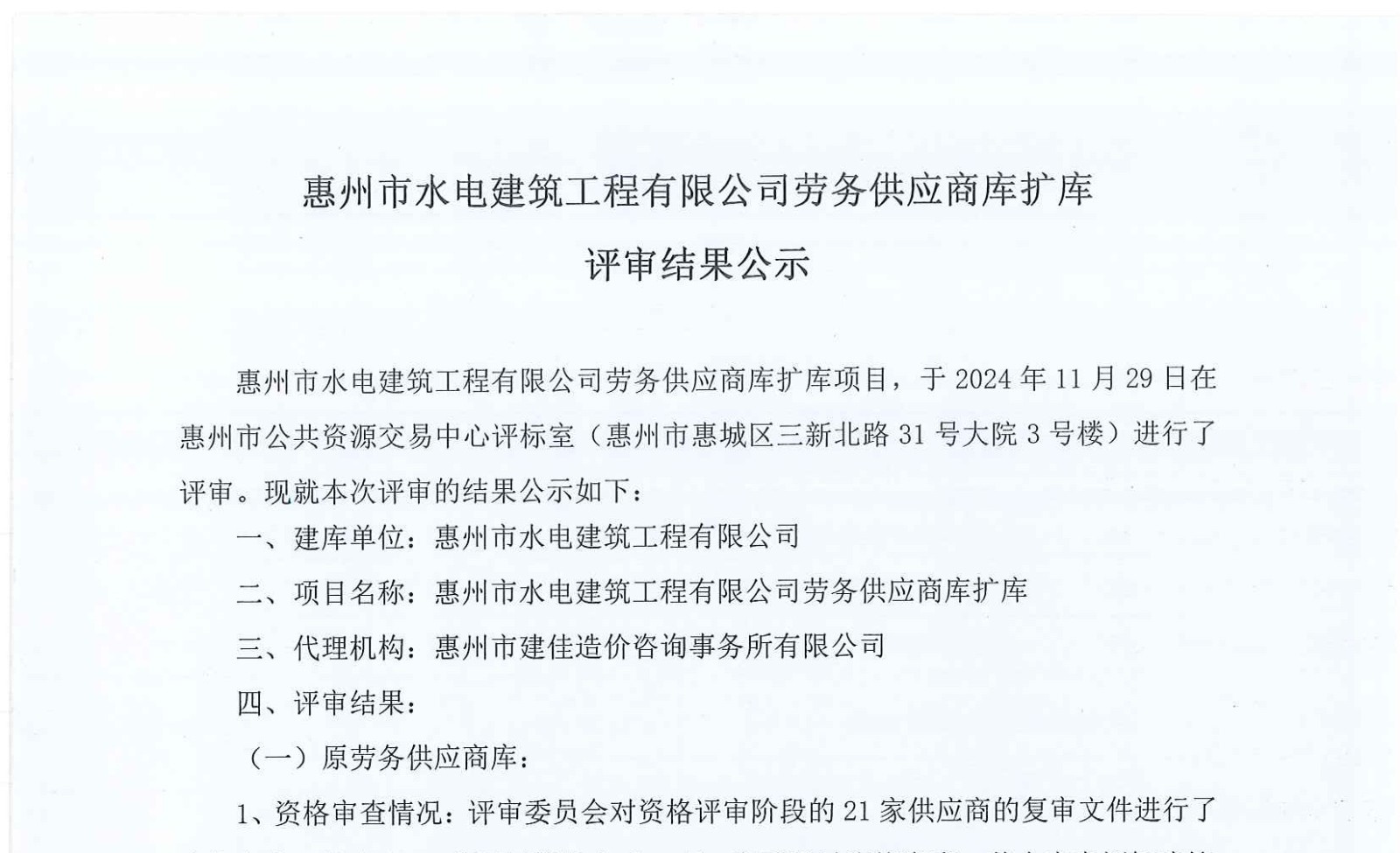 惠州市水電建筑工程有限公司成立于一九六四年四月,隸屬惠州市水務集團有限公司,是一家國有綜合性施工企業,主營水利水電工程、房屋建筑、市政工程等施工業務。公司擁有水利水電工程施工總承包一級、建筑工程施工總承包一級、市政公用工程施工總承包一級、公路工程施工總承包三級,公路路基、路面及建筑裝修裝飾專業承包二級,環保工程、機電安裝、河湖整治、輸變電工程專業承包三級等經營資質……
